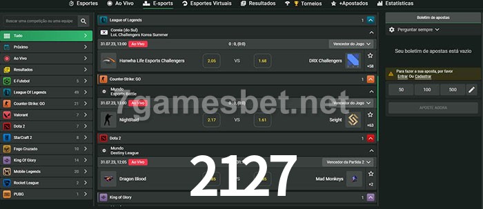 A aposta 2127 oferece aos jogadores a experiência mais conveniente de apostas em eSports!